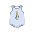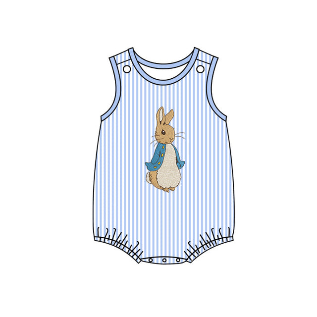 Sleeveless light blue stripe rabbit baby boys Easter romper - 0-3M is backordered and will ship as soon as it is back in stock.
