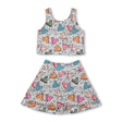 Sleeveless mouse balloon top skirt kids girls active wear set