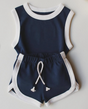 Sleeveless navy cotton top shorts baby kids clothes - 3-6M is backordered and will ship as soon as it is back in stock.