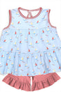 Sleeveless patchwork boat ruffle stripe kids girls outfits - 3-6M is backordered and will ship as soon as it is back in stock.