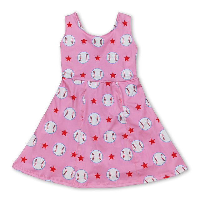 Sleeveless pink baseball stars kids girls athletic dresses - 3-6M is backordered and will ship as soon as it is back in stock.