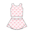 Sleeveless pink bow plaid top skirt kids girls active wear
