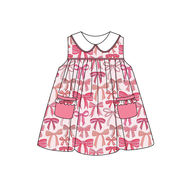 Sleeveless pink bow pocket baby girls dresses