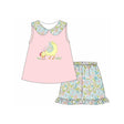 Sleeveless pink chicken floral top ruffle shorts girls clothes