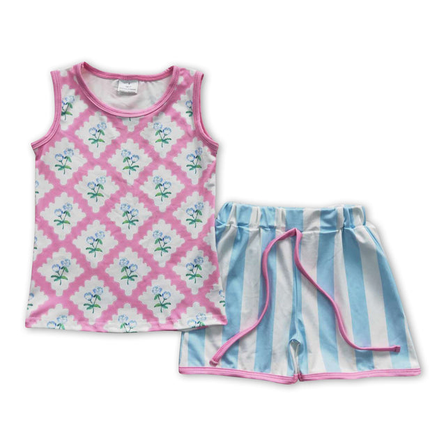 Sleeveless pink floral shirt shorts girls summer clothing - 3-6M is backordered and will ship as soon as it is back in stock.