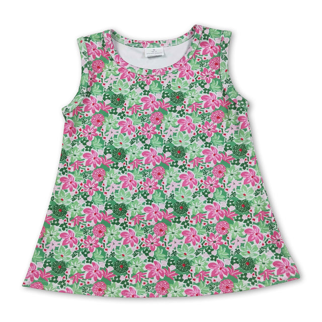 Sleeveless pink green floral kids girls activewear top - 12-18M is backordered and will ship as soon as it is back in stock.