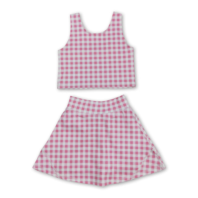 Sleeveless pink plaid top skirt girls summer clothes - 3-6M is backordered and will ship as soon as it is back in stock.