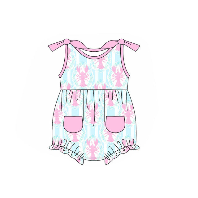 Sleeveless pink pockets crawfish baby girls romper - 0-3M is backordered and will ship as soon as it is back in stock.