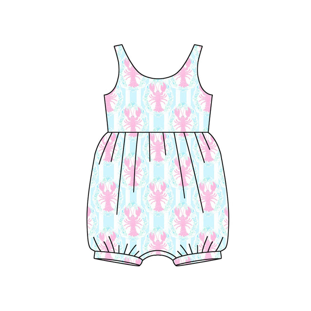 Sleeveless pink stripe crawfish baby girls romper - 0-3M is backordered and will ship as soon as it is back in stock.