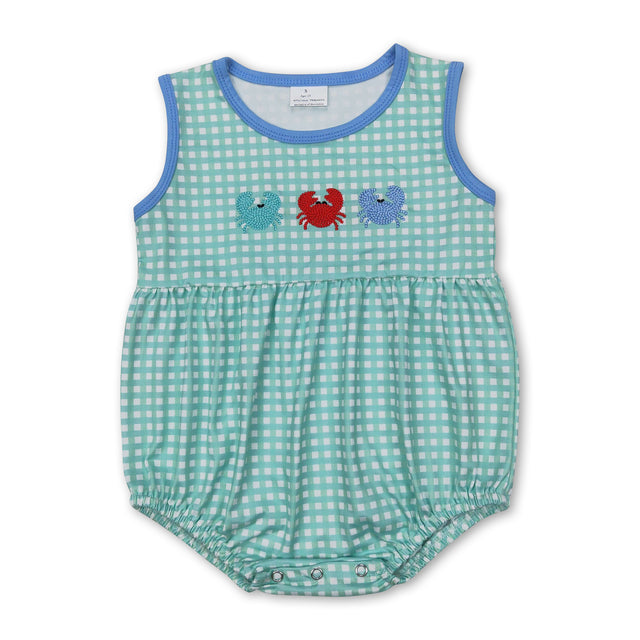 Sleeveless plaid crab baby boys summer romper - 0-3M is backordered and will ship as soon as it is back in stock.