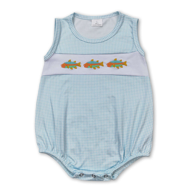 Sleeveless plaid fish baby boy summer romper