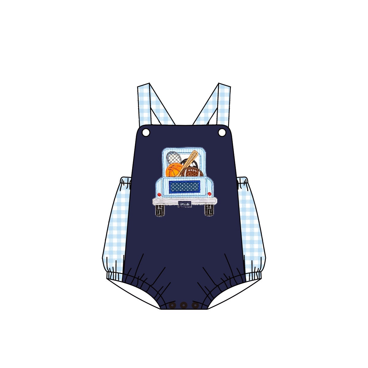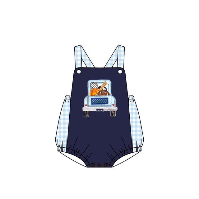 Sleeveless play balls truck plaid baby boys romper - 0-3M is backordered and will ship as soon as it is back in stock.