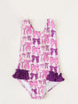 Sleeveless purple pink bow girls summer one piece swimsuit