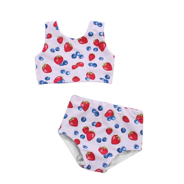 Sleeveless strawberry blueberry girls 4th of july swimsuit