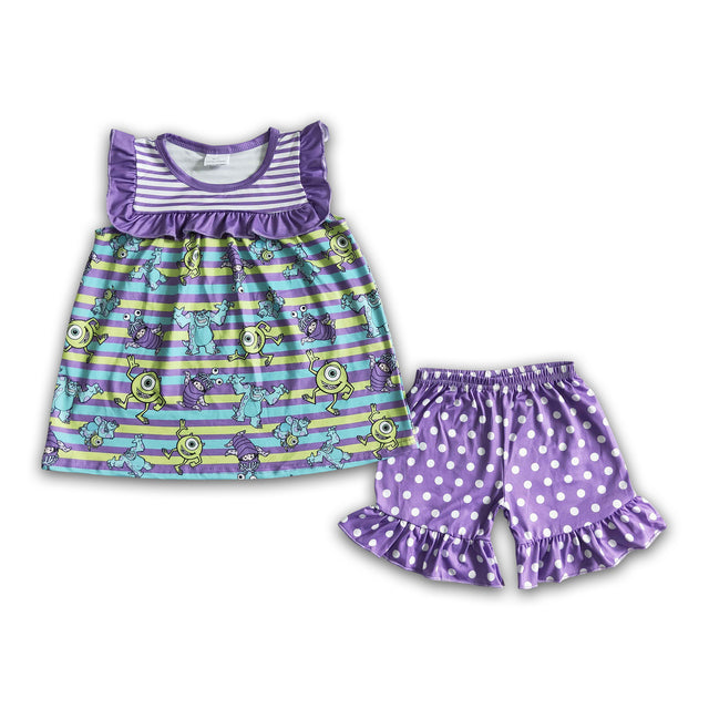 Sleeveless tunic lavender polka dots shorts baby girls summer clothes
