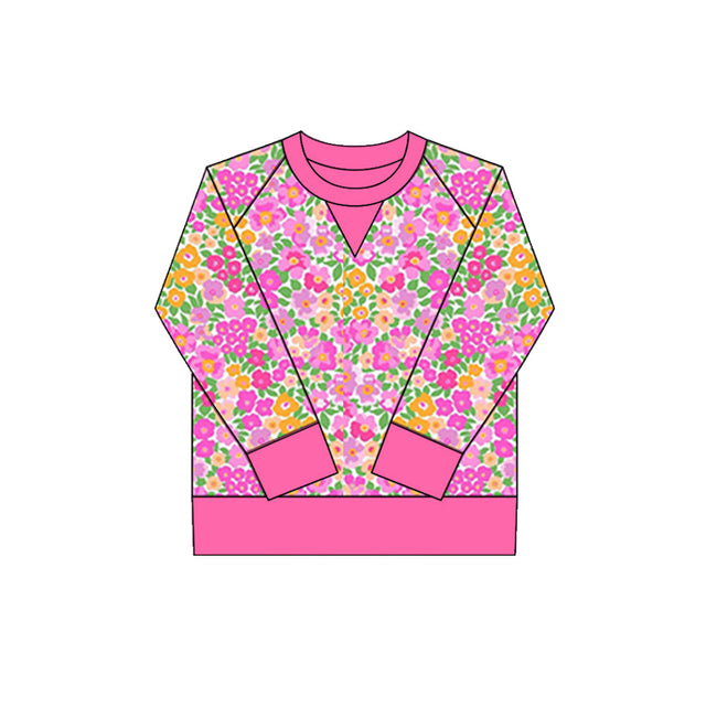 small flowers print yoga girl long sleeve hot pink top - 3-6M is backordered and will ship as soon as it is back in stock.