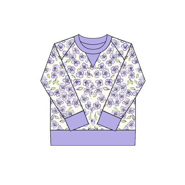 small flowers print yoga girl long sleeve purple top - 3-6M is backordered and will ship as soon as it is back in stock.