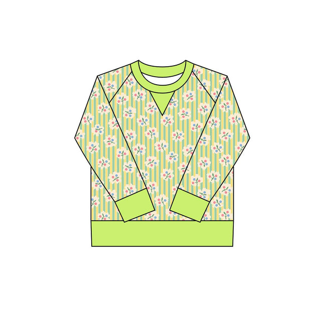 small flowers yellow green stripe print yoga girl long sleeve top - 3-6M is backordered and will ship as soon as it is back in stock.