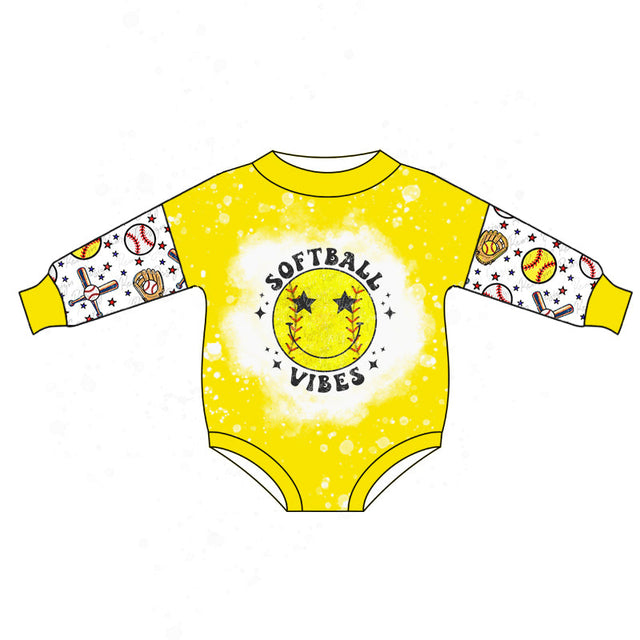 Softball vibes long sleeves baby girls romper - 0-3M is backordered and will ship as soon as it is back in stock.