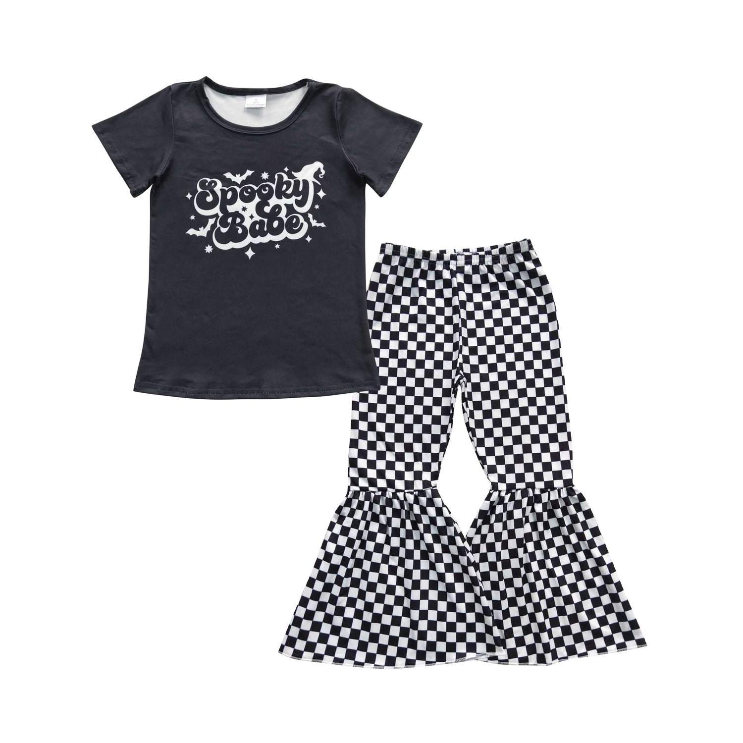 Spooky babe shirt plaid pants girls Halloween clothes