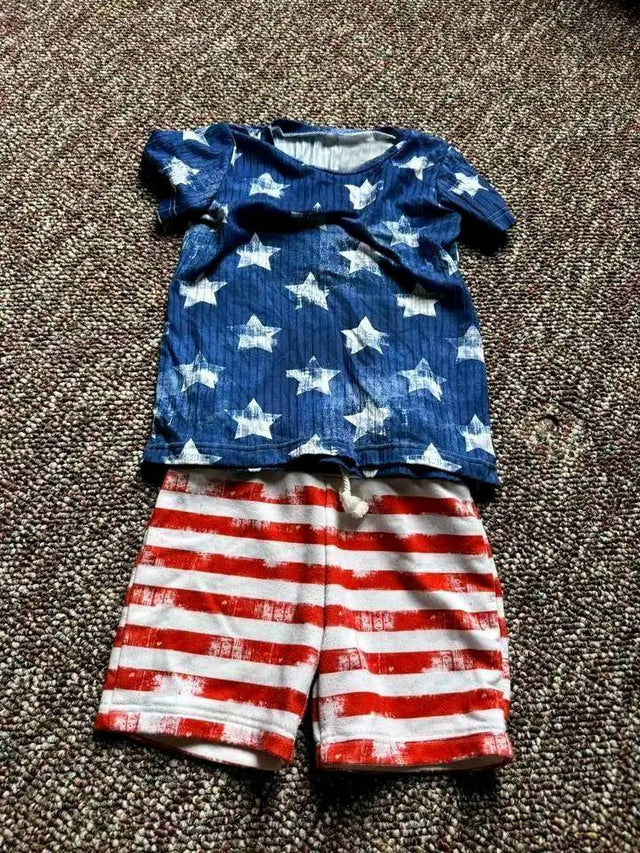Stars short sleeves top stripe shorts boys 4th of july clothes