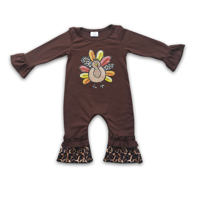 Turkey vinyl brown cotton baby romper - 0-3M is backordered and will ship as soon as it is back in stock.
