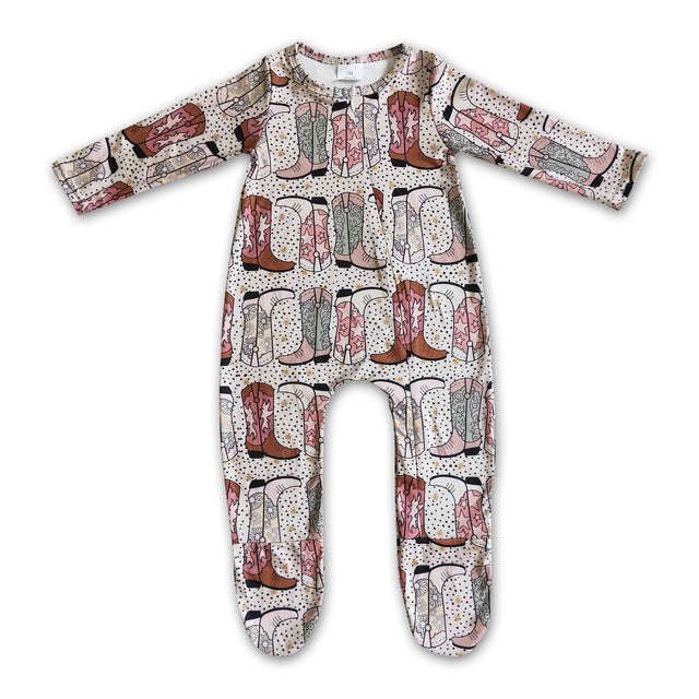 Boots print baby western footed zip coverall