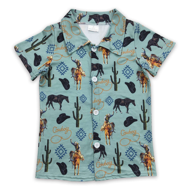 Cowboy cactus horse cow kids boy western button up shirt - 6-12M is backordered and will ship as soon as it is back in stock.