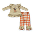 Dog pumpkin shirt plaid pants girls Halloween clothes