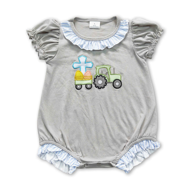 Eggs cross truck grey short sleeves baby girls easter romper