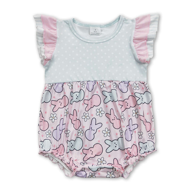 Flutter sleeves floral bunny baby girls easter romper