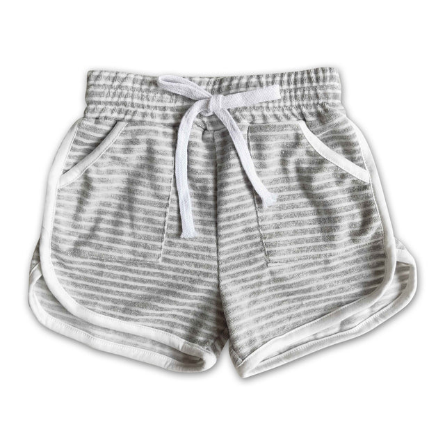 High quanlity cotton gray towel fabric stripe drawstring girls summer shorts - 6-12M is backordered and will ship as soon as it is back in stock.