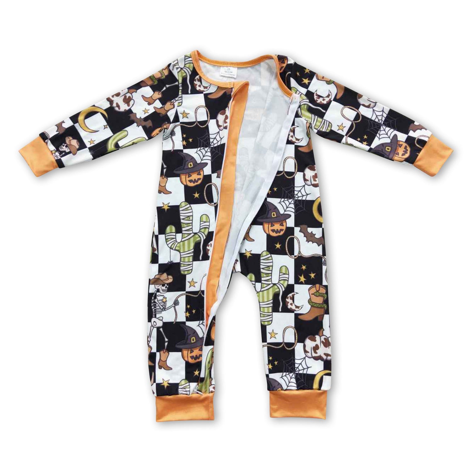 Howdy cactus pumpkin baby kids zipper Halloween romper