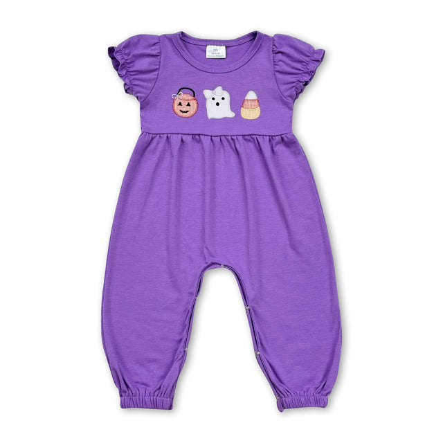 Lavender basket ghost candy corn baby girls Halloween romper - 0-3M is backordered and will ship as soon as it is back in stock.