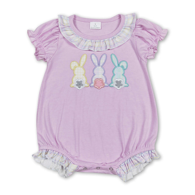 Lavender bunny short sleeves baby girls easter romper - 0-3M is backordered and will ship as soon as it is back in stock.