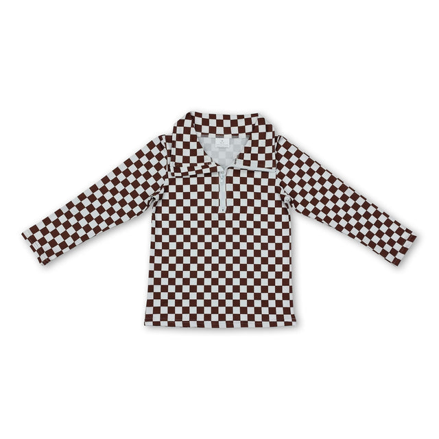 Long sleeves brown plaid baby kids zip pullover - 3-6M is backordered and will ship as soon as it is back in stock.