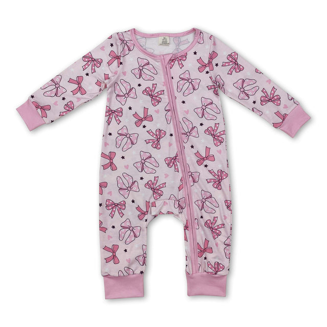 Long sleeves pink bow heart baby girls zipper sleeper