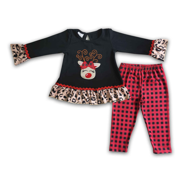 Reindeer embroidery tunic leggings Christmas kids clothing
