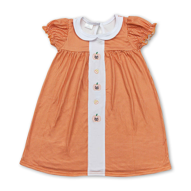 Orange plaid pumpkin candy corn girls Halloween dress - 3-6M is backordered and will ship as soon as it is back in stock.