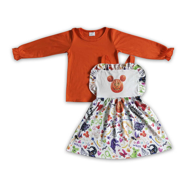 Orange shirt mouse snacks witches suspender dresses girls Halloween set