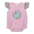 Pink flutter sleeves floral bunny baby girls Easter romper