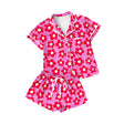 Pink red flower adult women button down pajamas - XS is backordered and will ship as soon as it is back in stock.