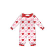 pink red valentine print baby girl long sleeve romper - 0-3M is backordered and will ship as soon as it is back in stock.