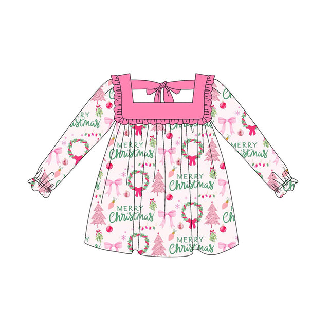 Pink ruffle merry Christmas ornaments girls dresses