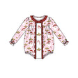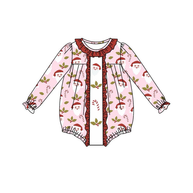 Pink santa candy cane baby girls Christmas romper - 0-3M is backordered and will ship as soon as it is back in stock.