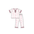 Pink short sleeves floral bow baby girls pajamas