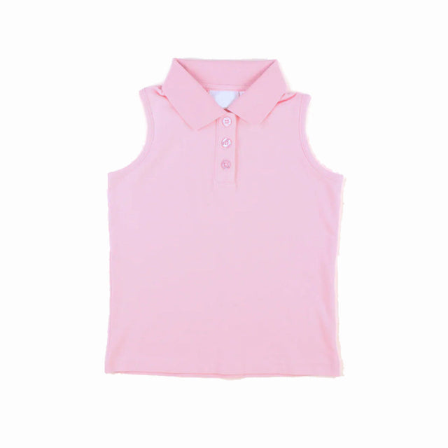 Pink sleeveless kids girls activewear polo shirt - 3-6M is backordered and will ship as soon as it is back in stock.