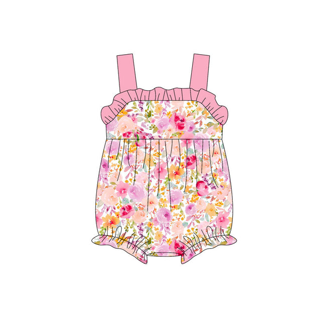 Pink straps ruffle floral baby girls summer romper