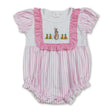 Pink stripe short sleeves carrot bunny baby girls Easter romper