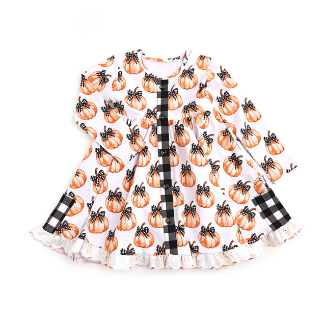 Plaid bow pumpkin pockets ruffle girls fall dresses